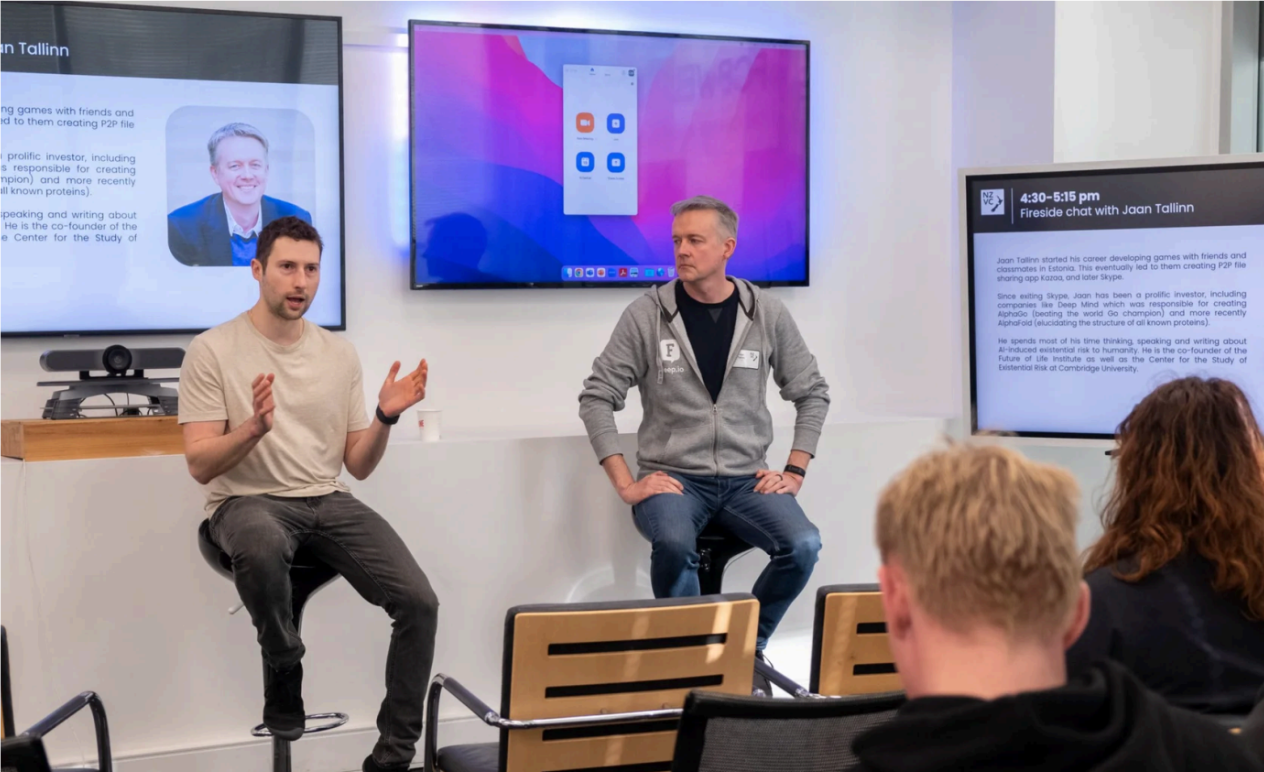 NZVC’s Mark Pavlyukovskyy speaks with Jaan Tallinn at its Portfolio Day in 2022.